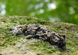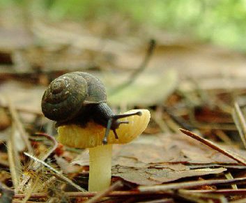 ここにもいた! きのこ馬乗りカタツムリ! ![]() 殻も黒ければ 身も黒い。 全身真っ黒カタツムリ しばらく見ていると ![]() びよよ〜〜ん 伸びる伸びる こ〜んなに伸びる これだけ伸びると いささか色が薄くなるのねぇ そして…無事,地面に着陸です! 林の散歩道 もちろんフンチェックも忘れずにー