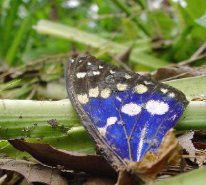 羽根が傷んで 触覚も切れて それでも飛び回っていたホタルガ一匹 ![]() まだまだ ガンバレ〜 遊歩道脇に 寄せてある草の上 生まれるものあれば がんばってるものあり ![]() そして 果てていくものあり… 瑠璃色の羽根一枚 オオムラサキ 今の時期はどこを見ても生き物いっぱい! 最後に元気に林を走っていたものをご紹介。 1.2.3.4.5… 早くて早くて,数えられない足の数 で,で,でっかいかもーー! 見てもいい方はクリック