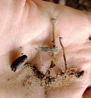 きのこきのこ・・・椿菌核茶碗茸・・・椿菌核茶碗茸・・・・ いったいどこにあるのかな〜 ゴソゴソッと枯れ葉をどけてみるとー ゴロン