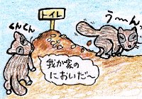 (平成14年 3月22日UP) 山道はフンだらけ 山路を歩きながらこう考えた。 物を食べるとフンが出る。生きているから当たり前。見て見ぬ振りをしても目に入る。とかくにこの世はフンだらけ。 ・・・と文豪は言わなかったけれど,山道にはまずフンが落ちている。 ![]() ペット&ヒトのは言語道断だが,野生の獣の落とし物は見逃せない。接近→内容物確認→落とし主推理,そしてこれぞというフンがあった場合にはニンマリと袋に収穫,ということになる。 これを目撃されたり告白すると「げげっ,人は見かけに寄らずー」と引かれたり,冷やかしの対象になったりする。フンコレクション(通称フンコレ)をしてるものにとっては,とっても住みにくい世の中なのだ。 それだからこそ堂々と胸を張って「ほおら,フンはこんなに面白い」と声を大にして言いたい私だ。 では,フンのなにに惹かれるのか。 まず第一に,野生のケモノって滅多に見られない。普通に暮らしている人にとっては,せいぜいイタチが突然目の前を横切っておおっと驚くぐらいだ。 フンはケモノのフィールドサインの一つ。これを見ているとケモノの息づかいを感じることが出来る。動物によって大きさ・形も特徴あるし,内容物を見れば季節感満点,昨日の食事とか体調すらわかる時がある。