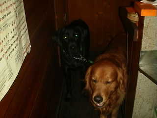 黒ラブの「あるたん」とGRの「モコちゃん」(左上)とボク(右)