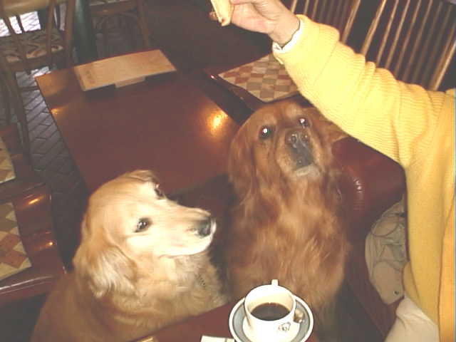 ママ達はおいしいお茶を・・・そしてボクたちにもお水&ビスケットをくれたよ