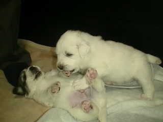 グレートピレニーズの「ブランちゃん」「ジョリィ君」も来てくれたから ボクがとっても小柄に見えたって・・・