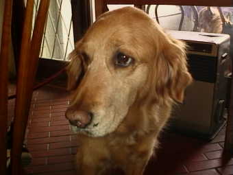初めて会うイエローラブラドールの「ラブちゃん」はTシャツを着ていたよ