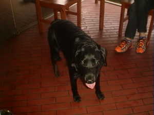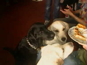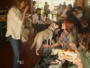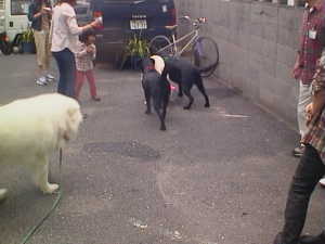 | 日本一かわいい華ちゃん | バス君(黒ラブ)とバンちゃん(GR) | ←アイシャちゃんも参入 | テーブルの下からやっと出てきたランちゃん | |||