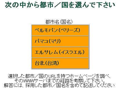 「次に述べる手順で、海外のある組織のホームページまでの経路を調べよ。」