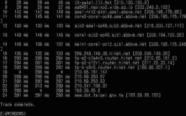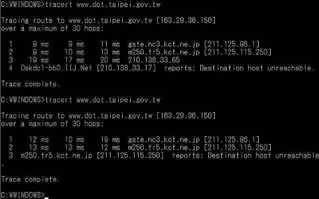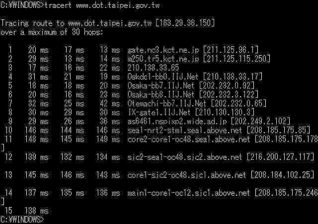 これらの中から gov tw のあるホームページを選び経路を調べる
