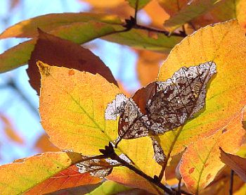 その下だけがスケスケの葉脈標本になってる!