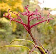 実の付いていた軸まで赤い サンショの木