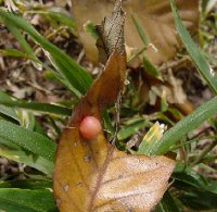 落ち葉にできてる まん丸虫こぶ