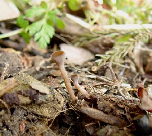 きのこきのこ・・・椿菌核茶碗茸・・・椿菌核茶碗茸・・・・ いったいどこにあるのかな〜 ゴソゴソッと枯れ葉をどけてみるとー ゴロン