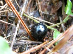 よっしゃ,小さい物見つけはお得意分野だ。地面捜索モードに切り替えてからほんの数秒,あっけなく地面の枯れ草の中にキラキラ輝く真っ黒な種が見えた。