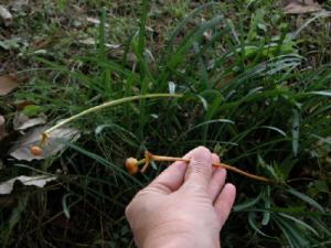 さてさて,球根を探すべく種付き花茎を辿ってみる。