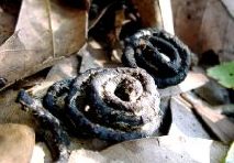 (平成14年 3月22日UP) 山道はフンだらけ 山路を歩きながらこう考えた。 物を食べるとフンが出る。生きているから当たり前。見て見ぬ振りをしても目に入る。とかくにこの世はフンだらけ。 ・・・と文豪は言わなかったけれど,山道にはまずフンが落ちている。 ![]() ペット&ヒトのは言語道断だが,野生の獣の落とし物は見逃せない。接近→内容物確認→落とし主推理,そしてこれぞというフンがあった場合にはニンマリと袋に収穫,ということになる。 これを目撃されたり告白すると「げげっ,人は見かけに寄らずー」と引かれたり,冷やかしの対象になったりする。フンコレクション(通称フンコレ)をしてるものにとっては,とっても住みにくい世の中なのだ。 それだからこそ堂々と胸を張って「ほおら,フンはこんなに面白い」と声を大にして言いたい私だ。 では,フンのなにに惹かれるのか。 まず第一に,野生のケモノって滅多に見られない。普通に暮らしている人にとっては,せいぜいイタチが突然目の前を横切っておおっと驚くぐらいだ。 フンはケモノのフィールドサインの一つ。これを見ているとケモノの息づかいを感じることが出来る。動物によって大きさ・形も特徴あるし,内容物を見れば季節感満点,昨日の食事とか体調すらわかる時がある。