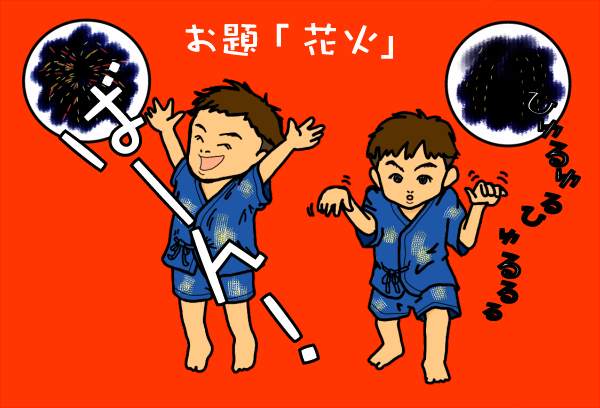息子の花火のものまねです。打ちあがる様と落ち行く様です。Tuesday, 14 August, 2001