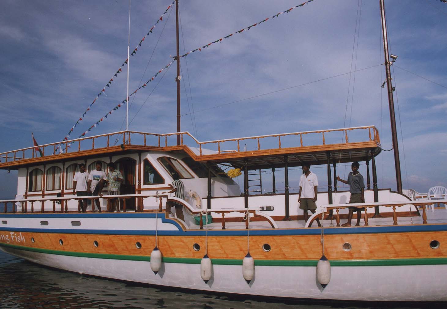 1日目は、ビスタ1に乗り込んだ。午前中は今ひとつ釣れなかったが、午後からは爆釣モードに突入した。さすがモルジブと言った感じで釣れ続く。午前中は潮が動かず駄目だったようだ。やっはり潮が動かないと釣れないみたいだ。釣り自体を堪能し、Flying Fishに帰港する。まず、シャワーを浴びビールを片手にデッキで釣り談義!しばらくすると、夕食の時間のチャイムかせなる。食堂に行くと美味しそうなにおい。最初の数日は上手かったんだけど・・・今思うとココナッツカレーは勘弁して???今度食べたら吐くよ、きっと。