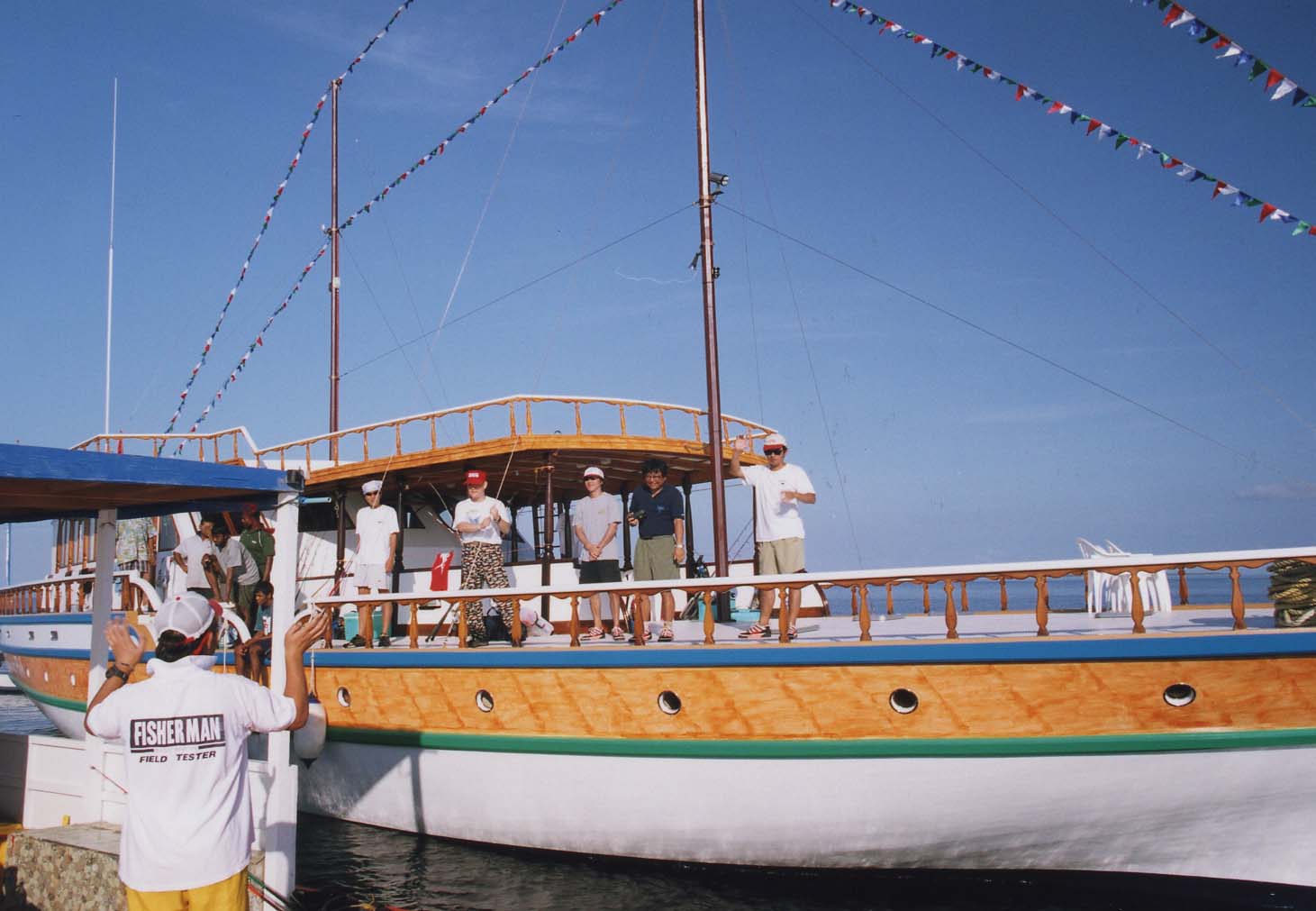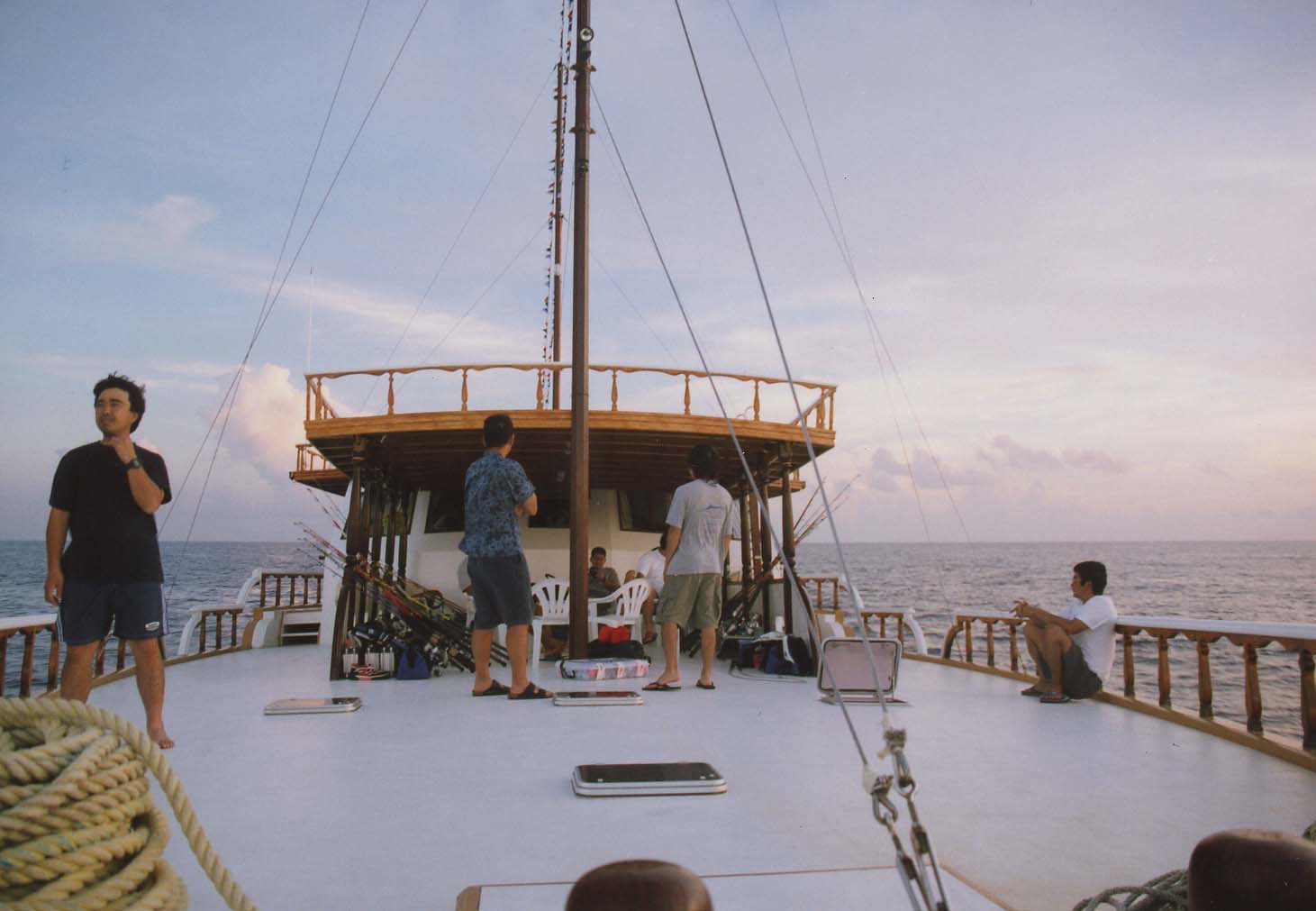 結局、マザーボート「Flying Fish」号に乗り込み、出航したのはお昼を回っていた。Flying Fishは快適な船で、ツインの部屋が7部屋あり各部屋にシャワー、トイレ完備してある。1日目は、釣りをせず移動だけだった。明日からの釣りに向けタックルの準備をしたり、デッキに寝そべったりと思い思いの時を過ごした。