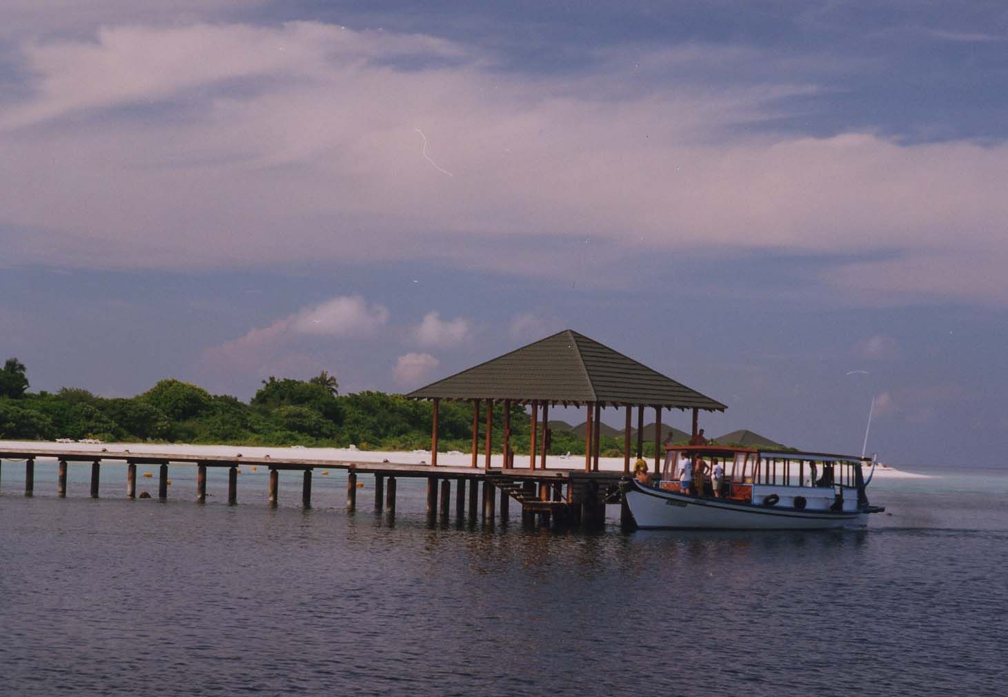 30分ぐらいでスコールもやみ、南国特有の暑い日差しが戻ってきた。約束の時間になってもナカナカ迎えにこない。東さんが「モルジブの連中に期待しては駄目、来たらラッキーぐらいに思ってないと」南国ではセコセコ動く必要がないようだ。何をそんなに焦ってるんだって思ってるんだろーな。