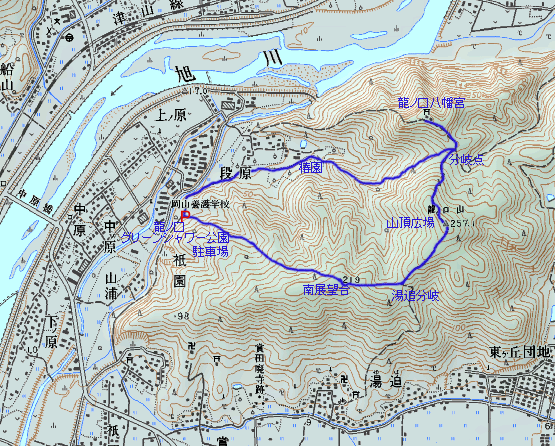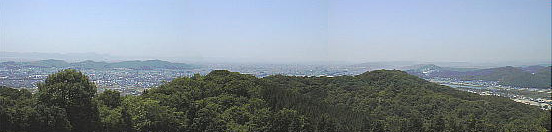 お参りを済ませ本殿の左横の道を進むと旭川(中原橋)から金山方向が見渡す事が出来る場所に行く事が出来る。ここからの展望は素晴らしい。再び、分岐点まで下り山頂を目指して10分位登ると山頂展望舎が見えてくる。休憩用のテーブルも沢山有り岡山市街を眺めながら休憩をする事が出来る。