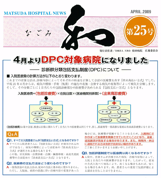 | なごみ25号 | 2009年4月 | DPC対象病院、排尿に関する症状の解説「泌尿器科」 |