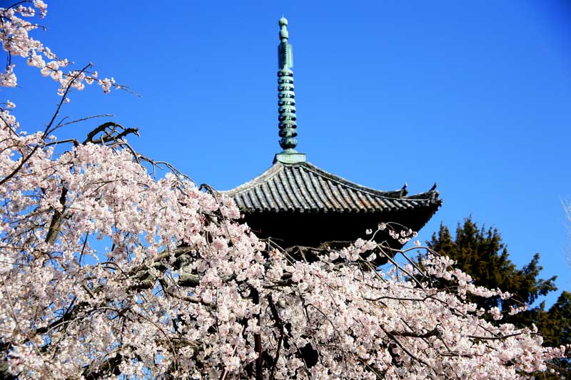 安珍と清姫で有名な「道成寺」に観光に訪れたところ、満開の枝垂れ桜 晴天にも恵まれ