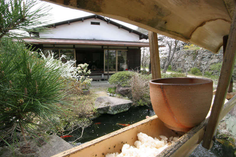 火襷の湯飲みは、小鳥のえさ台だそうです。この日も、小鳥の鳴声が多かったです。EFs 10-22 撮影