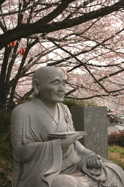 桜も満開で雪洞も用意されていました。西行法師像があり、花見にはもってこいの場所。誰もいない?