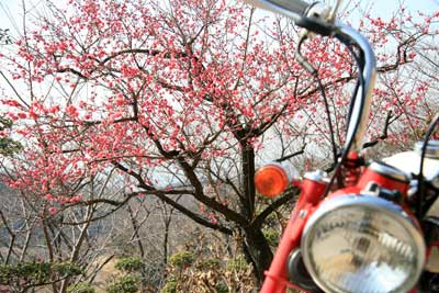 ![]() 天気が良いので、今シーズンのバイクの初乗りを 兼ね、種松山に梅の様子を見に行ってきました。 例年より、開花が遅れているそうで、一部の 樹が咲き始めていました。 |