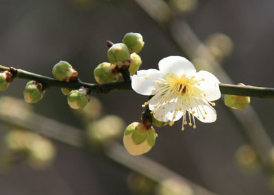 ![]() 白色は開花が一番遅く、チラホラ。 メジロ等がいないかと期待、ミツバチがいました。 |