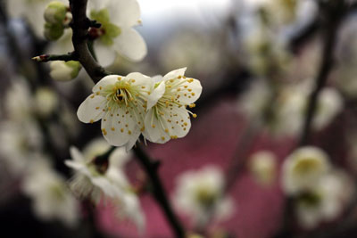 | {3/19 種松山にて撮影} 昨年より梅の開花が遅く、枝垂れ梅を除いて 白 桃 紅梅が見頃となっていました。 この日は生憎の天気、時折小雪がちらついていました。どうも季節が変なような気がします。 「タムロンマクロレンズミニミニ三脚プレゼント」にて三脚をゲット!マクロ撮影及び手持ちでの撮影に重宝します。 この三脚、バイクでの撮影のお供にも最適 活躍しそう。テスト撮影に梅ノ木の根元にあった仏の座を撮影してみました。 |