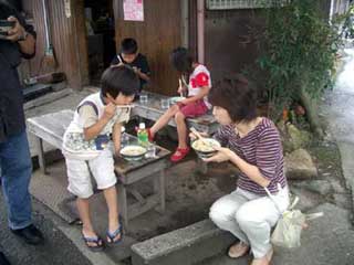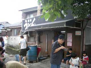 本日の最初は蒲生うどん店。細くわかりにくい道を隣のナビのおかげで一発で9時40分到着。 かけうどん100円・ちくわのてんぷら70円。期待が大きすぎたか麺・だしもうひとつ?