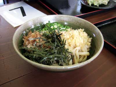 | 神戸から 友だちが帰省され、以前近くにあった「一念天」が西阿知に移転しているので 昼食に出かけてきました。そんなに大きな店ではありませんが、前よりきれいになり、システムも セミセルフ(判り易い説明が書かれている)。麺が以前より、柔らかくなっていました。 4人でいったので、「ざる(冷)」「ぶっかけ(あつ)」「ひやあつ」「しょうゆ(冷)」とそれぞれ注文。 私のお勧めは「ひやあつ」 麺も歯ごたえ、だし汁も美味しい味でした。うどんは喉で味わうそうですが すこし噛んで食べたほうが美味しい。ご馳走様でした。 |