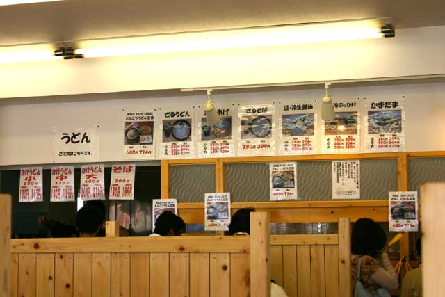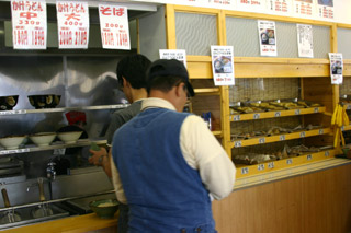 自分で大中小のうどんを取り、湯がいて、お好みのてんぷら等を乗せ、料金を払う。讃岐方式。麺は「はなまる」より上、