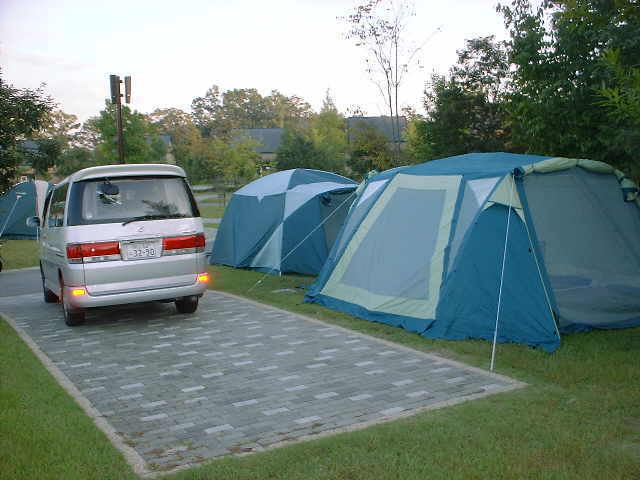 駐車スペースは広くブロックを敷きつめてあり、テント撤収時は芝生がつかずテントをたたむことができました。