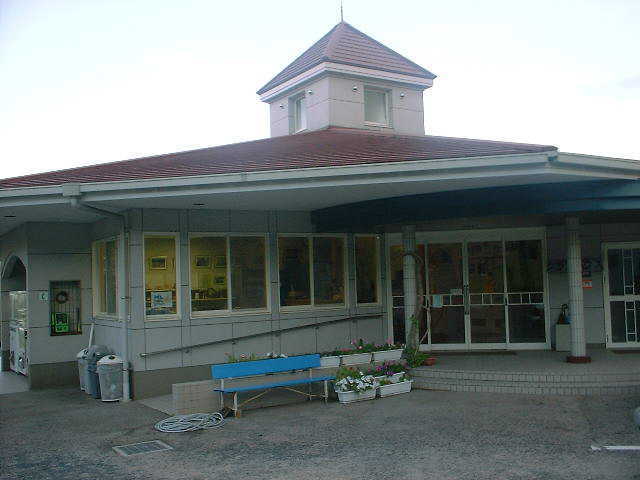 | キャンプ・パターゴルフの受け付けをしています。 売店もあり、炭や燃料を売っていました。ジュースはありましたが、アルコールはありませんでした。 管理棟の裏には、個別サイト用の炊事施設があります。 管理棟横の自動販売機では、アイスクリーム(AYA)を売っていました。 |