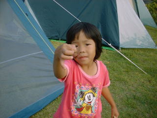 天気予報では、今日は雨が降るとのこと。親は、テントの乾き具合と、天気との兼ね合いが気になるところ。でも、子供たちは、そんな事はおかまいなし。朝から、昨日の“栗”の木に栗拾いに出かけました。本日の収穫、6個。