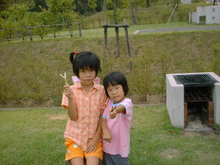 晩御飯の準備をしている時、子供たちは虫(とんぼ)取りです。
