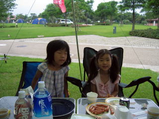 キャンプに行く前の天気予報では、多少雨マークもついていたのですが、みんなのパワーで雨はふっとんだようです。2日とも晴天で、真夏日の2日間でした。日頃、外に出ない大人たちは日焼けがヒリヒリ!