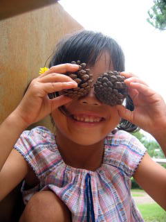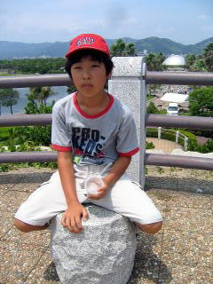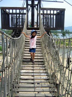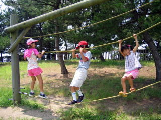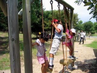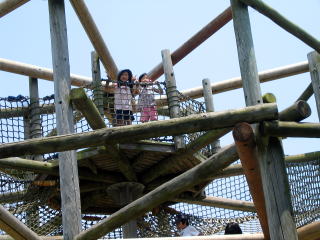 簡単なアスレチックで少し汗を流しました。瑞生君と美帆は今日もカニ探し。池の石の下にいるカニに夢中でした。