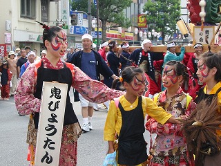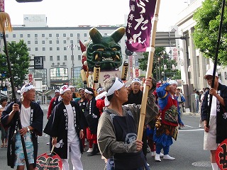 2006年7月22日(平成18年) 倉敷市の天領夏祭りに参加しました。 今年は倉敷駅前から出発です 子鬼も沢山参加しました 倉敷駅前から倉敷国際ホテルに向けて鬼神輿が町の中を練り歩きます 練り歩きが終わった後、倉敷国際ホテルの前で、集合写真を撮りました