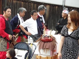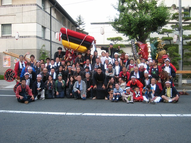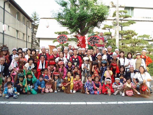 倉敷千歳楽の皆さんの練り歩きが終ったあとで、鬼神輿と一緒に記念写真を撮りました。