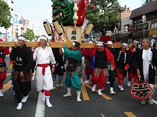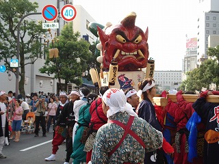 野村證券前から国際ホテルに向けて、鬼神輿の練り歩きがスタートしました。