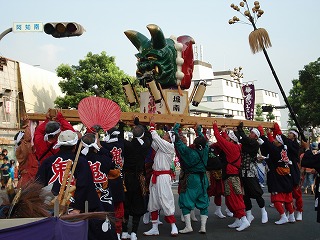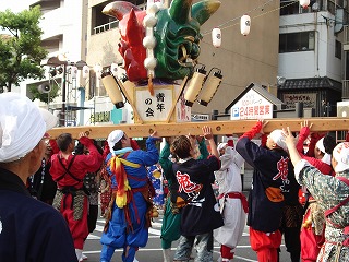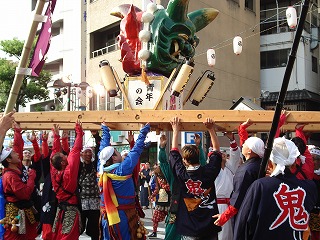 鬼神輿を担いで、支えて、持ち上げて、練り歩きの見せ場です。