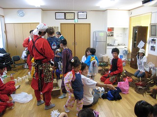 17時から中央通りを神輿が練り歩きました。 雅春さんの先導で30分間鬼神輿を