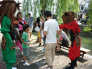 美観地区へ鬼が現れました。 観光で来られた方も突然の鬼の出現にびっくりです。