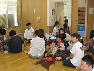 中央通りを練り歩く前の練習風景 今年もアーバンホールの皆様にはお世話になりました。