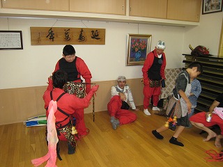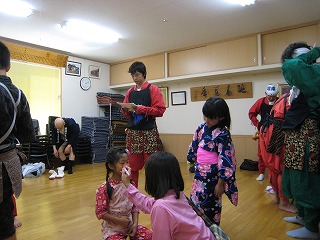 新しい笹を神輿に付けて、公民館で着替えを行い準備をします。