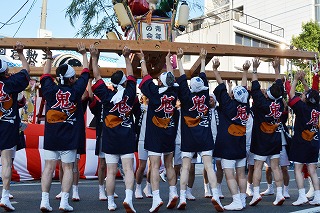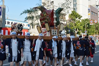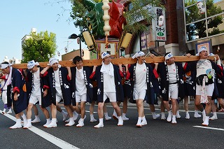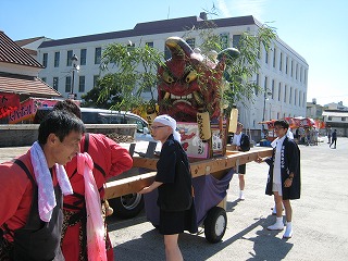 美観地区に到着しました。 トラックから神輿を降ろして移動開始。
