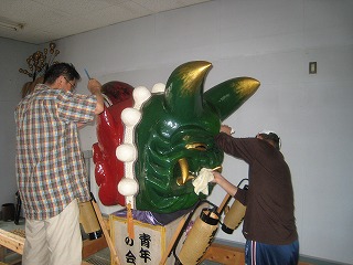 2007年7月15日(平成19年) 倉敷市の天領夏祭りに参加するために、鬼神輿の補修を行いました。