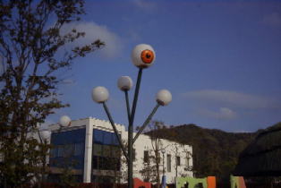 朝早かったのでまだ人通りが少なかったです。まだ店はあいていません。通りには、ゲゲゲの鬼太郎の登場しているキャラがあちこちに見られます。また通りの街灯は目玉になっていました。